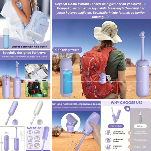 kişisel hijyeninizi her yerde korumanıza yardımcı olan pratik bir üründür. Seyahatleriniz sırasında temiz ve taze hissetmek önemlidir ve bu portatif taharet, bu ihtiyacı karşılamak için mükemmel bir çözümdür. Sızdırmaz tasarımı sayesinde güvenle kullanabilir, suyun dışarı sızmasını dert etmeden hijyeninizi sağlayabilirsiniz. Kompakt ve taşınabilir yapısı sayesinde, çantanızda veya bavulunuzda fazla yer kaplamadan taşıyabilirsiniz. Bu ürün, seyahatlerinizde konforu ve hijyeni bir araya getirerek, kendinizi her zaman güvende ve rahat hissetmenizi sağlar. Artık hijyeninizden ödün vermeden, her yerde temiz kalmanın keyfini çıkarabilirsiniz!